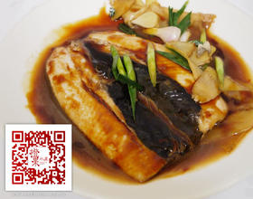再放上煎好的虱目鱼肚后。加入水、酱油、少许糖、米酒拌匀,煨煮至入味即可