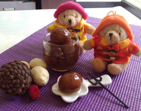 准备一个锅子,放入栗子、糖及水,水量要盖过栗子。水沸腾后,用小火煮至糖水变成糖浆即可装入干净的玻璃瓶中,糖浆要能淹盖过栗子。