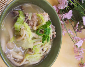 排骨入锅煮,大火开后转小水加葱姜片、花椒大料粉,烹料酒45分钟左右。