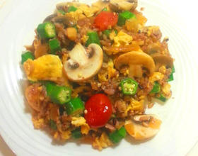 秋葵炒饭会增加米饭的黏稠感,视觉上有炊饭的感觉,但口感却能保有炒饭的爽口,欢迎大家试看看。 ^_^