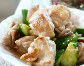 1、2、 因为滚刀块比较厚,想要保留清脆的口感又想要入味, 就不适合炒太久所以先抓点盐,可以先入味兼杀青味3、 因为我有腌粉所以不敢不加油直接干煎,但结果证明应该还是可以不需要加油的。如果鸡肉已经去皮,那就最好还是加点油再煎4、 因为我鸡块切得比较大,所以盖锅闷一下。 如果鸡块切得比较小,不用闷应该也可以