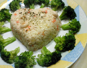 - 6. 在另一滚水锅中加入盐、少许油,川烫绿花椰菜至熟后,捞起沥干,作为配菜又成盘饰,洒欧芹(可不用)在奶菇饭上,即完成一道奶香菇鲜的美味料理。