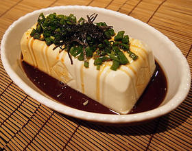 将材料放存豆腐上,淋上酱油及麻油即可。