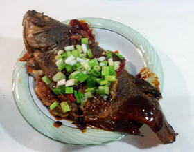 最后呈盘撒上葱花~香味四溢的酸酱红烧鱼完成