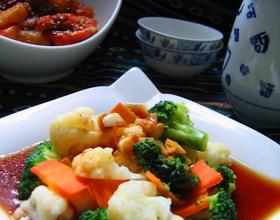 淋入菜花和西蓝花上。