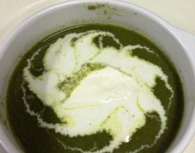 烟肉炒香 洋葱, 干葱茸, 蒜头炒香 菠菜用盐水烚熟, 再用冰水浸洗(可保持清绿) 将所有炒香材料(菠菜除外)放入清鸡汤煲15分钟, 放凉 放入搞拌机打成煳状, 放回煲中煲滚 菠菜打成煳状, 倒入己煲滚之汤内 上汤时加入少量淡忌廉即可~