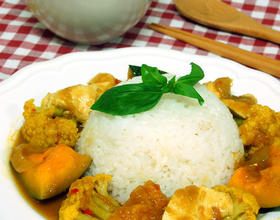 1、三样秘密武器一次公佈: 2、蒜蓉辣椒酱-咖哩的大人口味 3、苹果泥-增添香甜 4、巧克力-增添芳醇另外闷熟鸡胸肉的小帮手:太白粉水滚放入鸡胸肉,立即转小火1分钟后关火盖上锅盖闷5分钟,就能得到白泡泡幼咪咪的鸡胸肉啰!