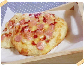 - 4. 排上所有配料以及调味料.面包周围刷上全蛋液(喷水也会上色)