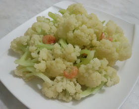 白花椰菜洗净切小朵,金钩虾洗净泡水备用。