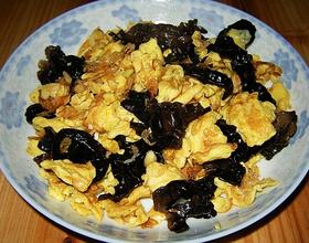 煎好的鸡蛋用铲子铲碎盛出备用。