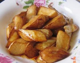 放姜末爆香,再把茭白放下,加糖,盐,料酒煸匀。