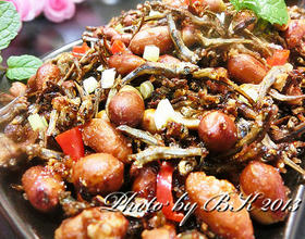 起锅,加入少许油爆香姜末及蒜末,接着加入步骤1丁香鱼干炒香(先炸过更好吃,不过为了健康只好舍弃此步骤^^”)。