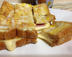 1、2、土司可以浸泡蛋汁+牛奶,但土司会比较潮湿,要煎比较久,所以我就略去牛奶了。3、因为一个人,也不想买奶油,所以就略去4、可以不用炼乳,纯粹是要消化炼乳,直接用它取代糖粉,最后上桌若有洒糖粉,会看起来更油亮