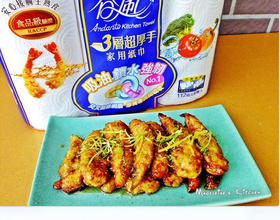 - 3. 将鸡柳以【春风三层超厚手家用纸巾】擦干后放入搅拌盆中加入腌料拌匀..腌渍至少2小时以上备用。料理前取出鸡柳均匀地沾裹低筋面粉,起一油锅~入油锅中炸熟至表面呈金黄色..