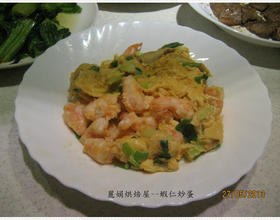 - 4. 锅中倒油将虾仁炒熟捞起,倒入蛋液中混合均匀。