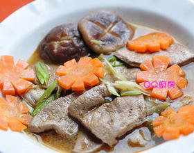 备料:将猪肝稍微沖洗浸泡少许的米酒,大蒜斜切薄片、香菇、红萝卜切花,另外使用不添加化学香料纯冷压制造的香醇麻油备用
