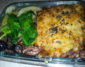 撒上黑芝麻,加上配菜就变成红豆饭便当了。好吃。