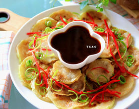 中大火用半煎炸方式入锅煎到双面金黄(煎的时候油要多一点,煎好再放在吸油纸上吸多馀的油)。