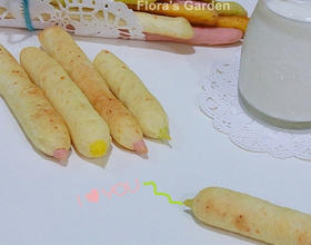 烤箱预热180度烤约10分钟。 - 4. 真可爱的面包彩色笔,如果喜欢多点颜色可以增加蔬果菜汁的颜色,