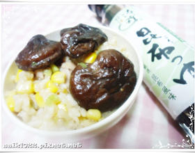 加入肉片、玉米粒、淬酿日式和风酱油海带风味 ※ 1,粥染色、食材熟透就完成了 ※ 2