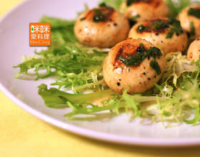 将生菜铺盘,洋菇排好,淋上酱料即完成。