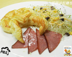 起酥皮上擦上蛋液,并把两片合起,再擦一次蛋液