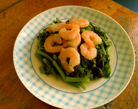 蒜仁切片炒香后下豆苗,加入盐、烹大师、适量水调味炒匀,起锅前加入虾仁拌炒就完成啦!