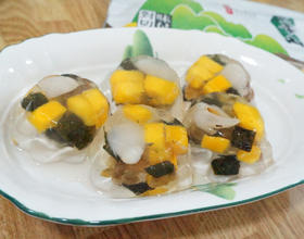 芒果、荔枝去皮去芓切丁,梅子去芓切丁,海苔切丁。