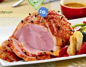 - 1. 将火腿去皮后划刀,刷上适量黄芥茉,于划刀交界处插上丁香。