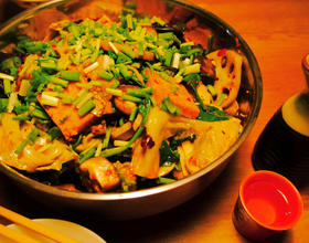 1菜谱里的食材是两人份的,根据个人喜好,喜欢肉肉的人可以还放些虾,百叶,肥牛什么的,嘻嘻2火锅底料我用的是麻辣味的,一般超市都能买到,用量大概有1/4块吧,不怕辣的话可以多放3一定要在加开水后再放入火锅底料,我试过,干炒的话容易糊锅,还容易溅出来的油烫到4生菜,菠菜这些容易熟的叶类菜,快速翻炒后马上出锅,不然容易出水,卖相也就不好看啦5最重要的一点,不要加盐!豆瓣酱和火锅底料都是含盐的,咸味是够的