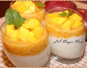 F. 将步骤3的牛奶鱼胶跟芒果泥搅拌均匀放凉