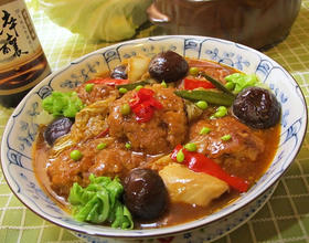 - 6. 放入做法4的肉饼, 味全淬酿酱油露, 番茄酱煨煮15分, 起锅前倒入勾芡水即完成料理。