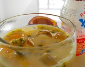 将是适量的冰块放入杯中,再将百香果肉与多多放入杯中,搅拌均匀即可~