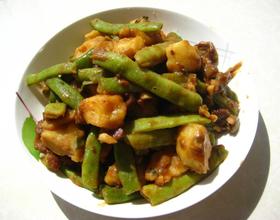 土豆去皮用勺子挖成块状,豆角择洗干净掰成段