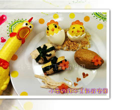 把烫过的鸡肉撕小块,依序装饰排盘成小鸡的家即可