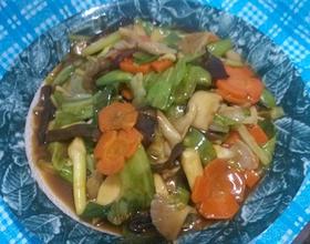 - 1. 新鲜香菇洗净切丝,扁豆去除蒂头,红萝卜洗净销皮后切薄片,高丽菜切成约3~4公分方块状,木耳洗净切丝。 蒜头切片,青葱切成段状。