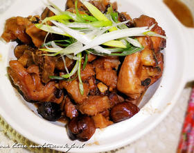 - 1. 备好材料~先将栗子冷冻后切对半(冷冻过的栗子好剥壳)