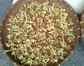 步骤1将花椰菜切成一口大小,皮不用去除但梗须稍为修一下。拿到太阳底下晒一天软化后;再腌抓适量的盐巴。接着再陆续晒至干燥为止,再收才藏到冰箱冷藏以防不时之须。