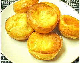 将鸡蛋,牛奶及盐搅拌均匀,再加入过筛的面粉拌匀,取出热好的烤盘,快速倒入面煳(高度约2/3高)。