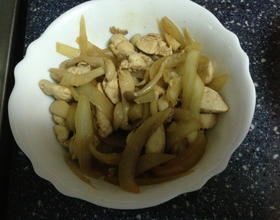 洋葱半颗;鸡胸肉200g;好菇道雪白菇1/3包;好菇道海鲜菇1/3包;蛋1颗;先将切好的鸡胸肉沾取些许蛋黄液备用。