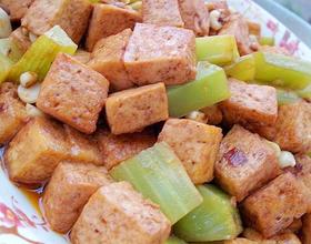 小火炒至汤汁浓稠时下炸好的豆腐丁。