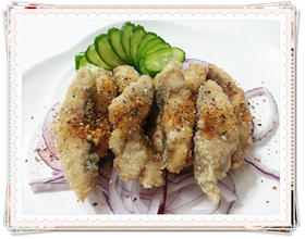 起锅后鱼条撒上七味唐辛子和黑胡椒粒即可