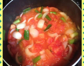 热锅加少许油,先放葱爆香接着加入其他食材,把番茄炒到烂;洋葱闷到软