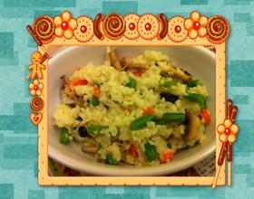 再放入冷饭拌炒,让所有材料融合ㄧ起后再加入鲜奶