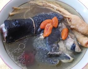 乌骨鸡川烫去血水~中药稍微清洗后~将所有食材放入锅中~加入8杯水~外锅倒1 1/2杯水(量米杯)~开关跳起等10~15分钟即可~