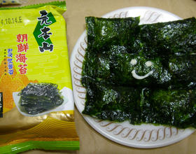 将炒饭舖放于海苔中间(炒饭因使用隔夜饭,所以须先微波加热)