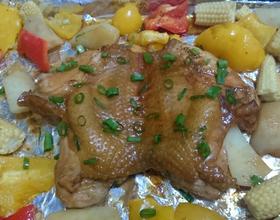 ~每烤5分钟左右会涂上腌料的酱汁 烤了20分后放彩椒 上下火200度
