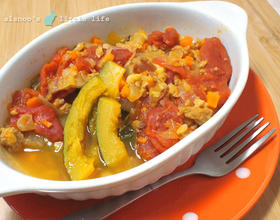 这次的肉酱用的是熟透的小番茄,冬天小番茄很甜很香,去籽去皮后做成肉酱非常有口感喔!