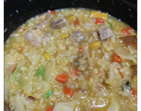 香气出来之后将所有食材放入炒一下,加水煮滚后开小火煮30分,