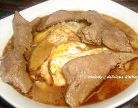 加入猪肝快炒2分钟,最后加入蛋、调味料再煮1-2分钟即可关火...
